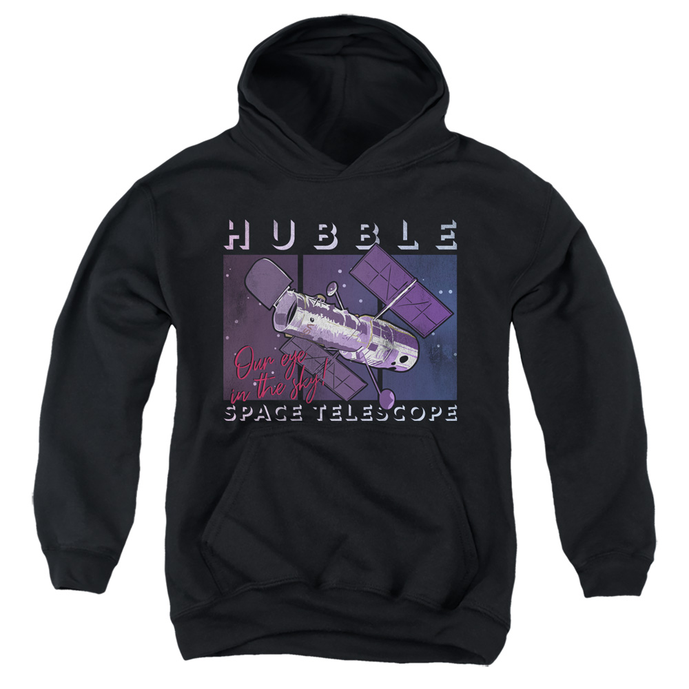 Trevco NASA153-YFTH-2 NASA & Eye in the Sky-Youth Pull-Over Hoodie, Black - Medium