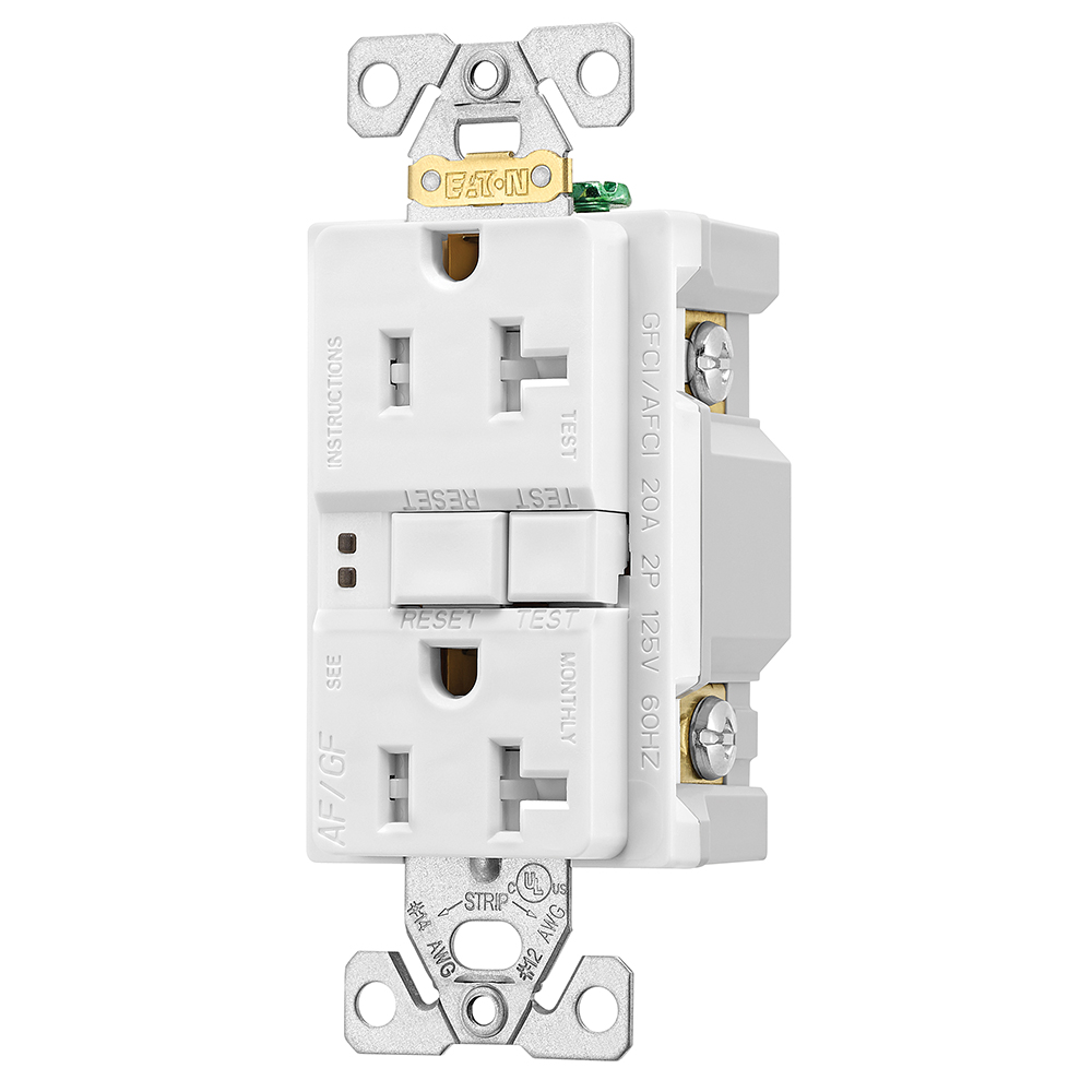 Cooper Wiring Devices Eaton TRAFGF20W AF, Arc Fault/GF, Ground Fault Dual -Purpose, Duplex Receptacle with wallplate 20A 125V WH