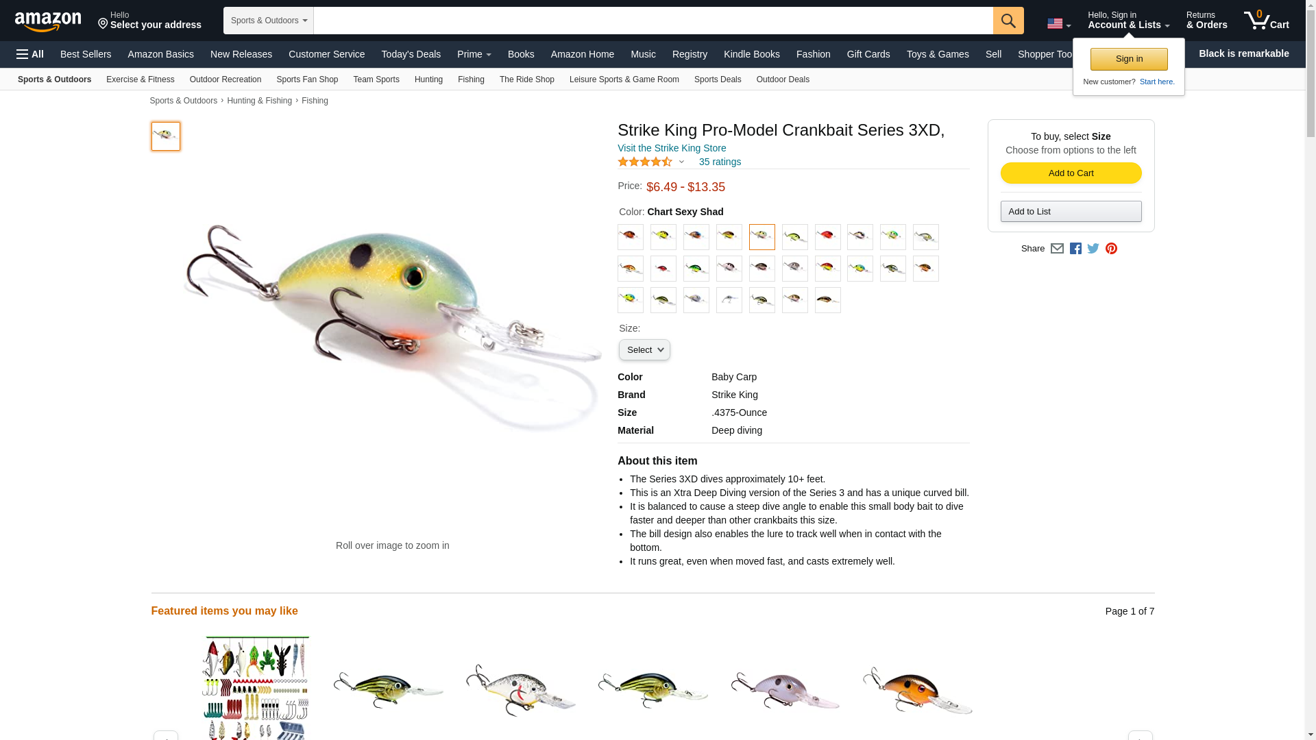 The Strike King Pro-Model 3XD Series Crankbait attracts bass with a realistic small body and 3-D eye design, while a curved bill allows the bait to dive deep and track well. Size 6 treble hooks. 3/8 oz.