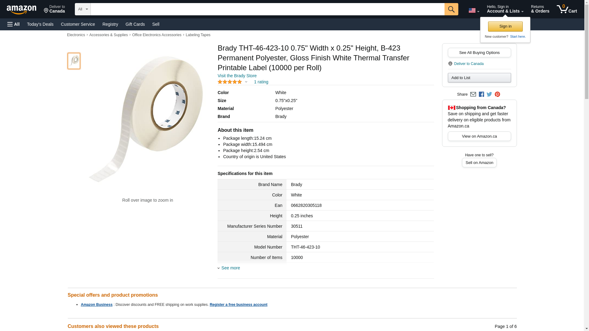 Brady Tht-46-423-10 / Roll Of 10000 Labels Rohs Compliant: Yes - THT-46-423-10