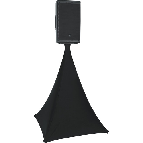 The <strong>GFW-QUADSCRIMB</strong> by Gator Frameworks is a Quad 360 stand scrim light duty black stretchy cover. This cover fits Frameworks AV/LCD Quad legged stands and most standard speaker and AV quad stands. It covers 360 degrees and includes a scrim ring and zipper carry bag. The cover features feet cups for the bottom of the stand and a flame retardant Lycra. The GFW-QUADSCRIMB creates a clean, professional look for any application and is machine washable.</p>