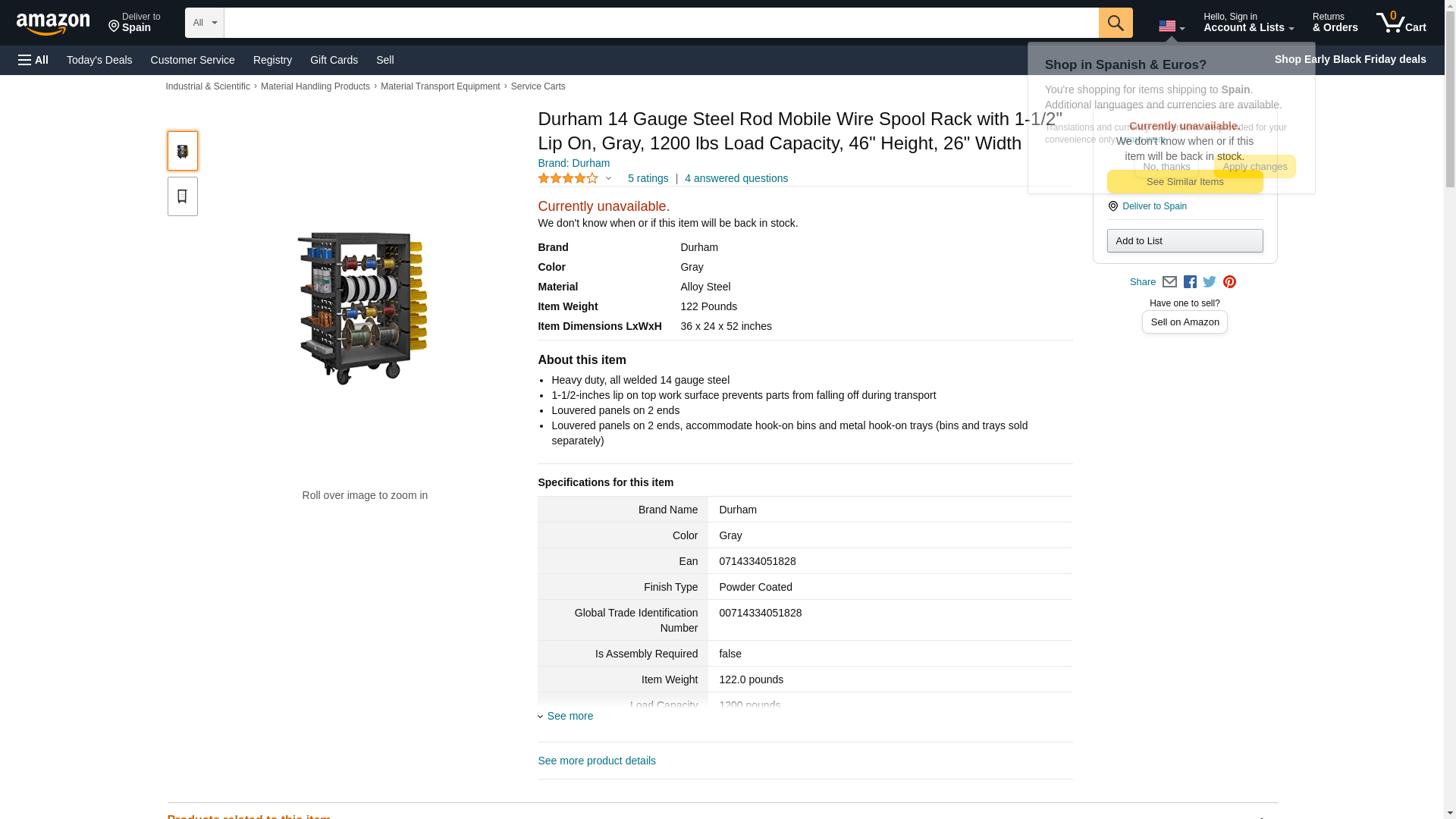 Durham MWSR8-LP-95 - Durham MWSR8-LP-95 Wire Spool Utility Cart: Steel, Gray -Best Prices Shop National Supply Network!