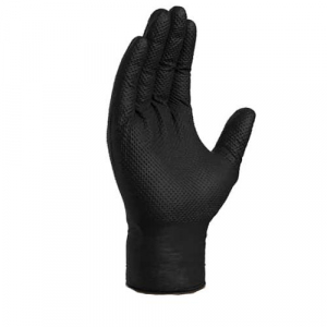 The strength you need for the toughest jobs. The dexterity you want for work that demands precision.AMMEX Gloveworks HD Black Nitrile Powder Free Industrial Gloves are the perfect blend of power and control.This is a new dimension in disposable gloves: the ultimate in black nitrile, engineered for pros who need the best protection.AMMEX Gloveworks HD Black Nitrile Powder Free Industrial Gloves' raised diamond texture--our most aggressive, with 60 percent more surface area than standard nitrile gloves--allows more liquid to be channeled away, so you have more gripping power in wet conditions. Those diamonds also create a reverse texture on the inside to help keep air circulating, and your hands stay drier.Durable and resistant to punctures, tears, and rips, they're designed for extended-duration use and will protect against grease, pesticides, gasoline, and a long list of specialty chemicals. Their tactile sensitivity is excellent, giving you a sense of touch you might expect from thinner gloves.Popular in automotive, manufacturing, janitorial, plumbing, paint shop, food service, chemical, and industrial uses, AMMEX Gloveworks HD Black Nitrile Powder Free Industrial Gloves help conceal dirt, grease, and grime for a professional appearance. They're made from component materials that comply with FDA regulations for food contact, which makes them a great fit for food processing applications.Latex-free and powder-free but chlorinated for easy donning, they're available in sizes M-XXL and sold 100 gloves per box, 10 boxes per case.You think you're tough? AMMEX Gloveworks HD Black Nitrile Powder Free Industrial Gloves can stand up to the toughest tasks, and the raised diamond texture ensures you will get an even higher level of performance.If you've been using standard black nitrile gloves, it's time to upgrade your experience. AMMEX Gloveworks HD Black Nitrile Powder Free Industrial gloves give you more.
