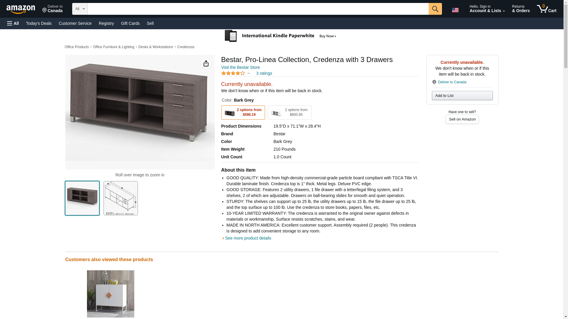 Bestar Pro-Linea Credenza with 3 Drawers, 72W, Bark Grey