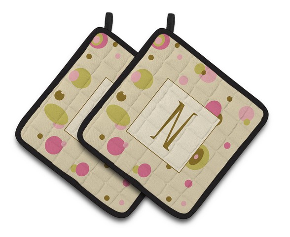 Carolines Treasures CJ1004-NPTHD Letter N Initial Monogram - Tan Dots Pair of Pot Holders, 7.5 x 3 x 7.5 in.