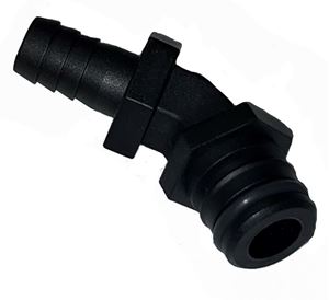 www.PWMall.com. PWMall-EF-QC-50EL12- QA x 1/2" Hose Barb 50° Elbow Fitting, Black