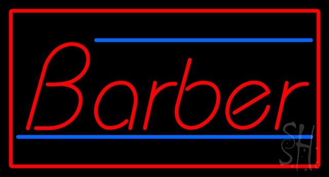 Sign Store N100-2803 Red Barber Blue Lines With Red Border Neon Sign, 37 x 20 x 3 In.