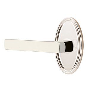 Brass Modern Hardware Collection - Half Dummy Dumont Left Handed Lever with Oval Rose in Polished Nickel by Emtek - 8520DT.HALF.US14-LH | MyKnobs