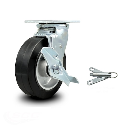 6 Inch Rubber on Aluminum Caster with Ball Bearing and Brake/Swivel Lock SCC