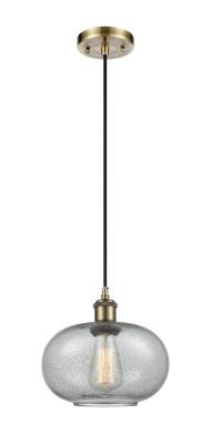 INNOVATIONS LIGHTING 516-1P-AB-G247 BALLSTON GORHAM 9 1/2 INCH ONE LIGHT CHARCOAL GLASS MINI PENDANT, ANTIQUE BRASS,...