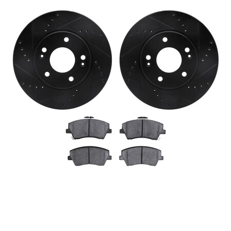 8302-03098, Rotors-Drilled and Slotted-Black with 3000 Series Ceramic Brake Pads, Zinc Coated