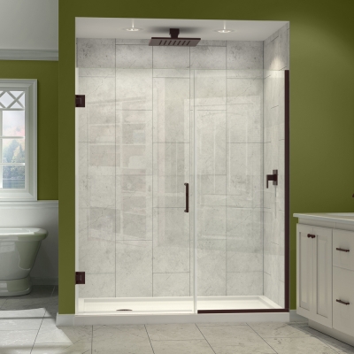 DreamLine SHDR-243707210 Unidoor Plus 37 to 37 1/2 Inch Hinged Shower Door The Unidoor Plus Shower Door from DreamLine, the only shower door you need to complete any shower project. The UNIDOOR combines premium 3/8" thick clear tempered glass with a sleek frameless design for the look of custom glass at an amazing value. This collection is extremely versatile with an incredible range of sizes to accommodate shower openings from 23" to 61" in width. With clean lines, modern touches and an upscale look, the UNIDOOR Plus gives a breath of fresh style to any bathroom space. Product Specifications 3/8 in. (10mm) thick clear tempered glass Chrome, Brushed Nickel or Oil Rubbed Bronze finish hardware Frameless glass design 1/2 in. Out-of-plumb adjustment on stationary panel side Solid brass wall mount self-closing hinges (5 degree offset) Anodized aluminum U-channel profile for stationary panel(s) installation Reversible for right or left door opening installation Materials: Tempered Glass, Brass Tempered glass ANSI certified Optional SlimLine shower base for select sizes Product Warranty Limited 5 (five) year manufacturer warranty Warranty for any hardware in Oil Rubbed Bronze finish is limited to 1 (one) year SKU: SHDR-243707210-01 SHDR-243707210-04 SHDR-243707210-06 SHDR24370721001 SHDR24370721004 SHDR24370721006