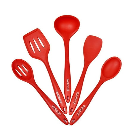 WAND1168 <br /> <b>Features</b> <br /> <ul> <li>Designed for durability, ease of use and easy clean up: With a strong nylon core, ergonomically designed handles and the perfectly shaped heads, now there are silicone utensils for every job. And Welland's premium non-stick silicone is literally the easiest substance to clean. Simply wipe under hot water or throw them in the dishwasher</li> <li>Hygienic solid silicone design: There's no head to pop off these kitchen tools and no seams between the handle and head of the ladle, spatula turner, mixing spoon, spoon spatula or slotted spoon for bacteria to grow, which means healthier cooking and less clean up required</li> <li>No risk 100% money back guarantee: So confident that you will be completely satisfied with our silicone spatula set that they guarantee our product! Not satisfied for any reason, just return them, and we'll happily give you a full refund (or replace them, if there is a problem)</li> <li>Professional steel core handle: The strength of the steel core silicone spatula will hold up to the severe use that chefs and home cooks love, won't break like cheap plastic handles and can be used easily by anyone</li> <li>Quality you can count on: Welland's silicone cooking utensils are 100% FDA grade and BPA free. These heat resistant cooking tools can be used up to 480F and are non-stick friendly so you can mix and stir directly in your expensive pans. And they're stain and odor resistant so you'll enjoy them for years to come, they simply won't discolor, warp, melt or chip like your old plastic kitchen utensils or bamboo kitchen utensils</li> <li>Set includes: 1 Turner, 1 Spoonula, 1 Mixing Spoon, 1 Slotted Spoon and 1 Ladle</li> <li>Utensil Head Material: Silicone</li> <li>Product Type: Turner/Spoon/Spatula/Utensil set</li> </ul> <br /> <b>Dimensions</b> <br /> <ul> <li>Spatula/Turner: 11.5" x 3"</li> <li>Spoonula: 10.5" x 2.5"</li> <li>Mixing spoon: 10.5" x 2.5"</li> <li>Slotted spoon: 10.5" x 2.5"</li> <li>Overall Length - Top to Bottom: 12.5"</li> <li>Overall Width - Side to Side: 5"</li> <li>Overall Depth - Front to Back: 3"</li> <li>Overall Product Weight: 1 lbs</li> </ul> <br /> <b>Specifications</b> <br /> <ul> <li>Commercial OR Residential Certifications: Yes</li> </ul>