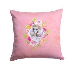 Carolines Treasures CK4173PW1414 14 x 3 x 14 in. Standard Grey Poodle Pink Flowers Fabric Decorative Pillow