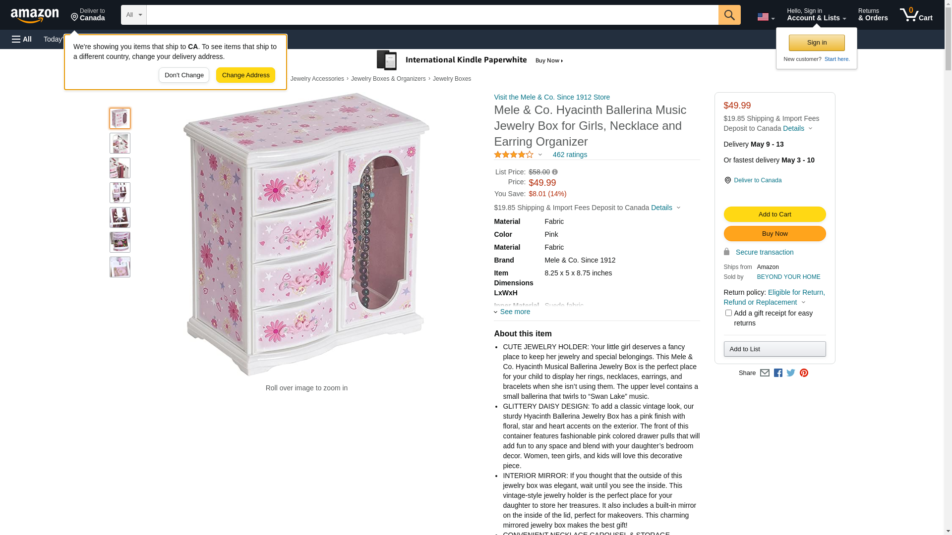 At Mele & Co. we’ve been helping family and friends like you organize your jewelry and accessories since 1912. Our founder Emidio Mele came to America from Italy and began to learn his trade of crafting designer jewelry cases. Our company is still run by the Mele family 3 generations later. We believe that everything should have a place in your home, especially jewelry and small treasures. This Hyacinth Ballerina Jewelry Box is the perfect storage unit for jewelry and trinkets that deserve a home. Don’t let your little one keep her special items sitting out or on a dresser where they could get lost. This jewelry box has perfectly sized compartments and drawers that are sure to fit all her storage needs. Our Hyacinth Ballerina Jewelry Box is made of quality materials and even plays a special song when you open it! It plays “Swan Lake” while the dainty ballerina figurine twirls when it plays. The top of the box is perfectly flat, allowing you to set objects on top of the box when not in use. This box also has 3 open area drawers and a windowed necklace carousel compartment with 8 hooks. The drawers and necklace carousel compartment door open and close easily with the cute pink pulls. The necklace carousel has a convenient magnetic closure. Whether you are needing to store necklaces, earrings, bracelets, watches or other small trinkets, there is a place for them inside this classic jewelry box that measures 8.25" x 5" x 8". We’ve also added a mirror to the inside of the lid so your little one can easily see herself. This jewelry box makes the perfect gift for your daughter, granddaughter, niece or anyone else who appreciates ballet. Get a Hyacinth Ballerina Jewelry Box today!