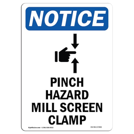 OSHA Notice Sign, Pinch Hazard Mill With Symbol, 18in X 12in Aluminum