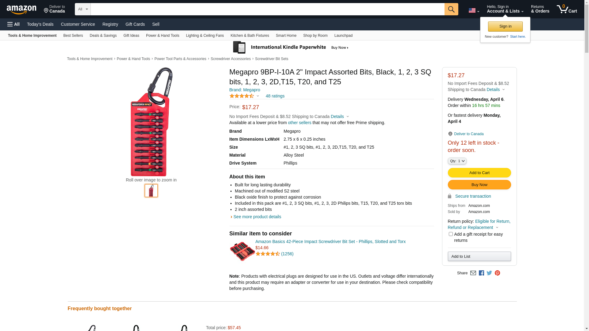 Megapro 9BP-I-10A 2" Impact Assorted Bits, Black, 1, 2, 3 SQ bits, 1, 2, 3, 2D,T15, T20, and T25