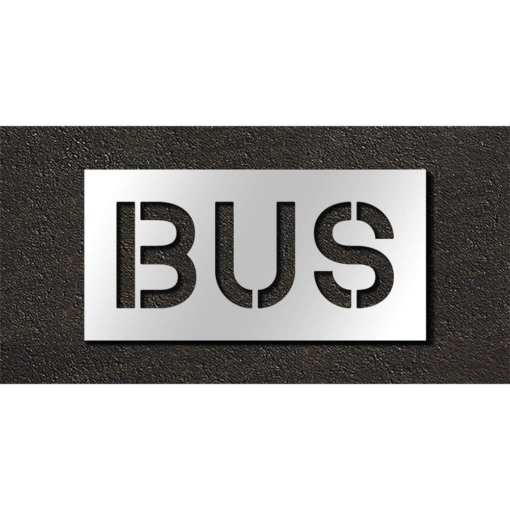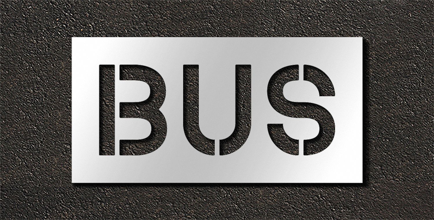 Pavement Stencil, Character Type Message, Duty Light, FAA AC 150/5340-1K Compliant No, Font Highway Gothic, Included Characters, Messages, and Symbols Bus, Includes Bus, Individual Character Height Not Applicable, Individual Character Width Not Applicable, Interlocking No, Interlocking Orientation Not Applicable, Material Polyethylene, Message or Symbol Height 10 in, Message or Symbol Width 26 in, Number of Pieces 1, Overall Stencil Height 16 in, Overall Stencil Thickness 0.063 in