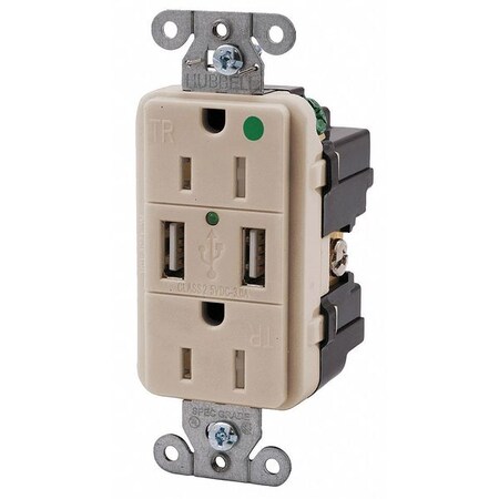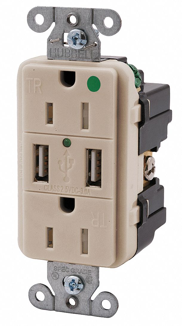 - Hubbell Tamper Resistant Hospital Grade Usb Charger Duplex Receptacle, 15 Amp, Light Almond