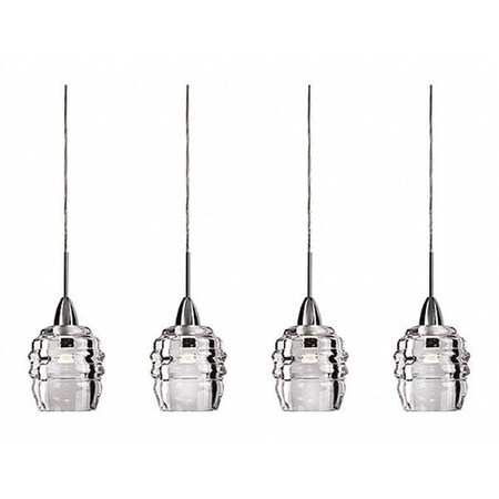 Vintage but modern linear LED four light multi-pendant, with polished chrome metal details and elegant cannikins which omit the light beautifully through billowing heavy gauged die-cast clear glassware. Maximum Kuzco SSL Wire length of 120" and is equipped with our powerful 120V AC LED technology, 20W, with 1320* delivered lumens fully dimmable. Similar styled chandeliers, pendants, walls sconces and vanities available. See series for full family details.
