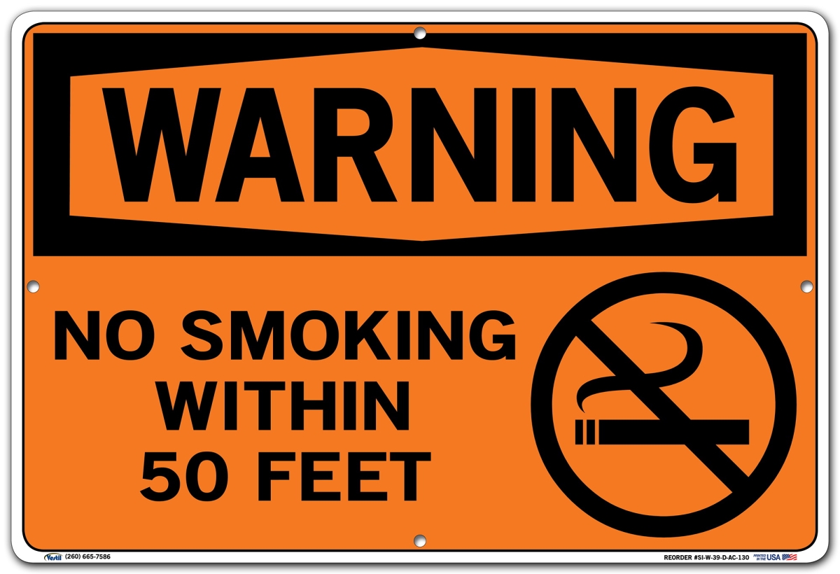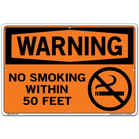Vestil SI-W-39-D-AC-130 NO Smoking Within 50 FEET Warning Sign, Aluminum Composite, 0.130" Overall Size, 18.5" W x 12.5" H