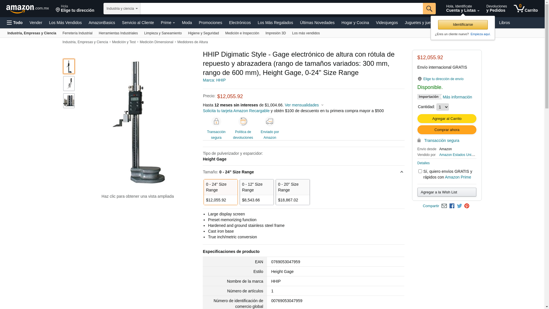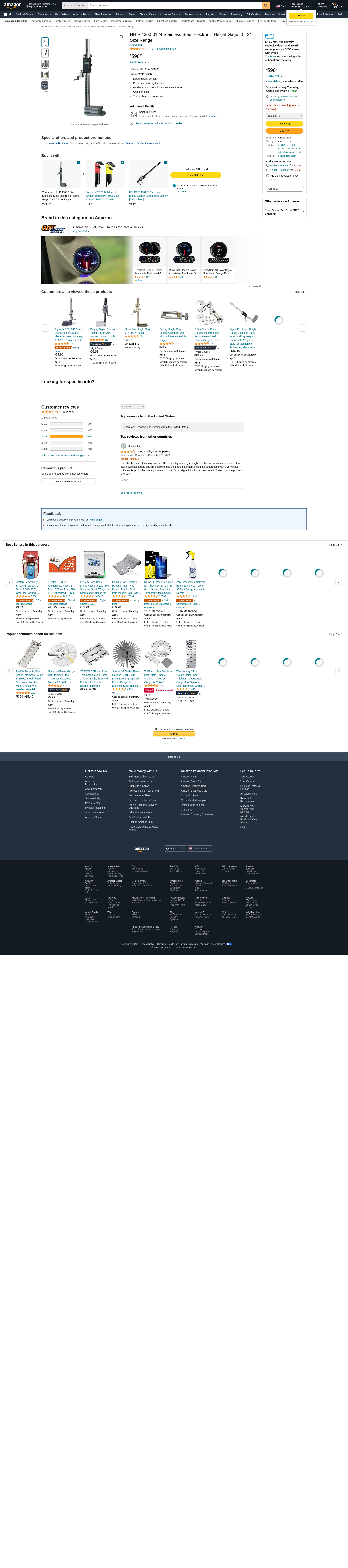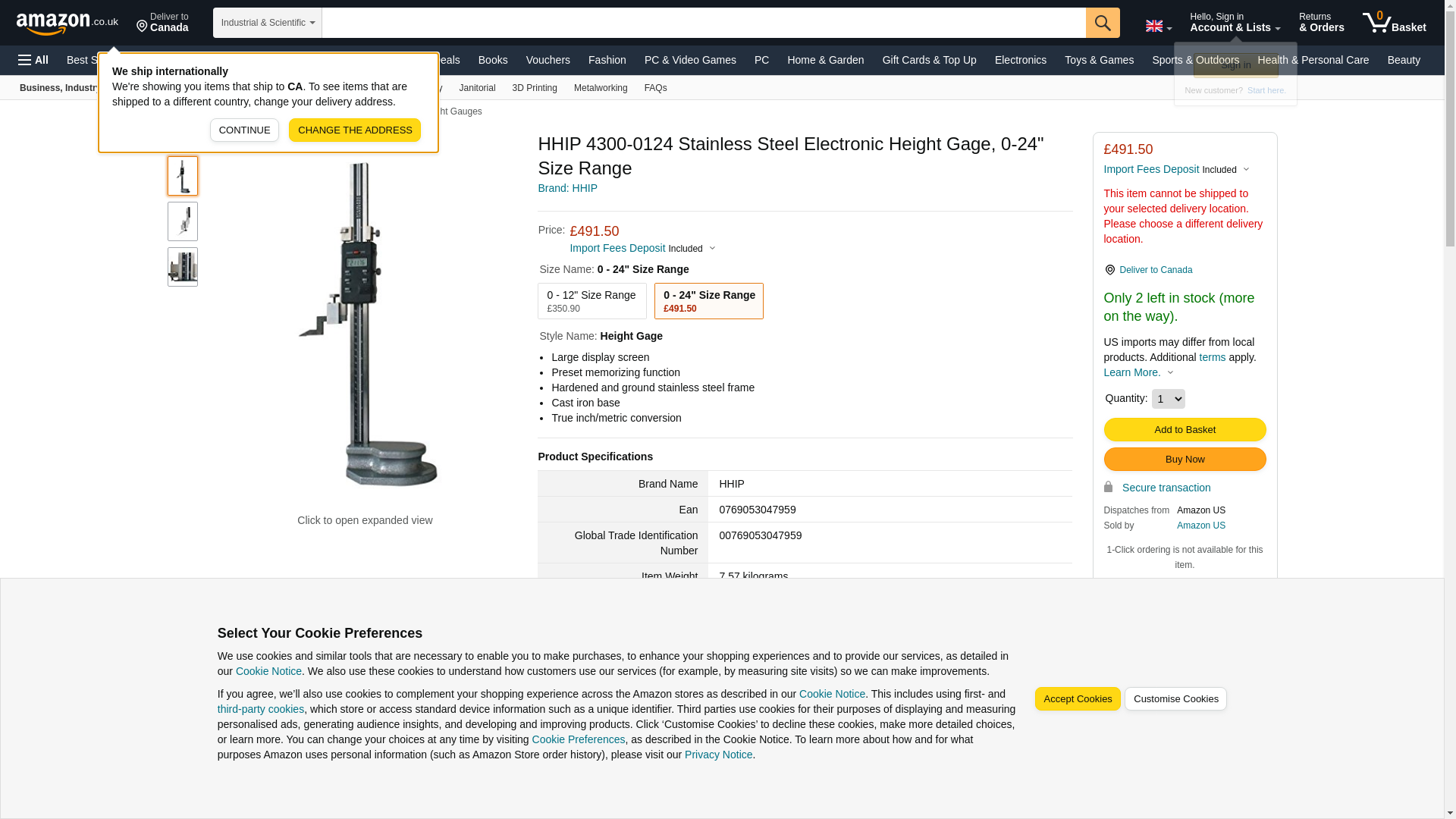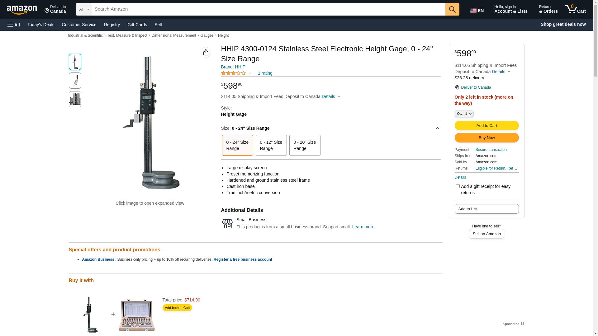 HHIP 4300-0124 Stainless Steel Electronic Height Gage, 0 - 24" Size Range
