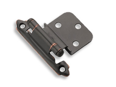 Closing Type: Self Closing. Length: 2.75". Mounting Hardware Included:: Yes. Mounting Type: Face Mount. Overlay: 3/8" Inset. Product Finish: Oil Rubbed Bronze. Product Type: Decorative Hinge. Projection: .125". Self Closing: Yes. Sold: Pair. Width: 2".