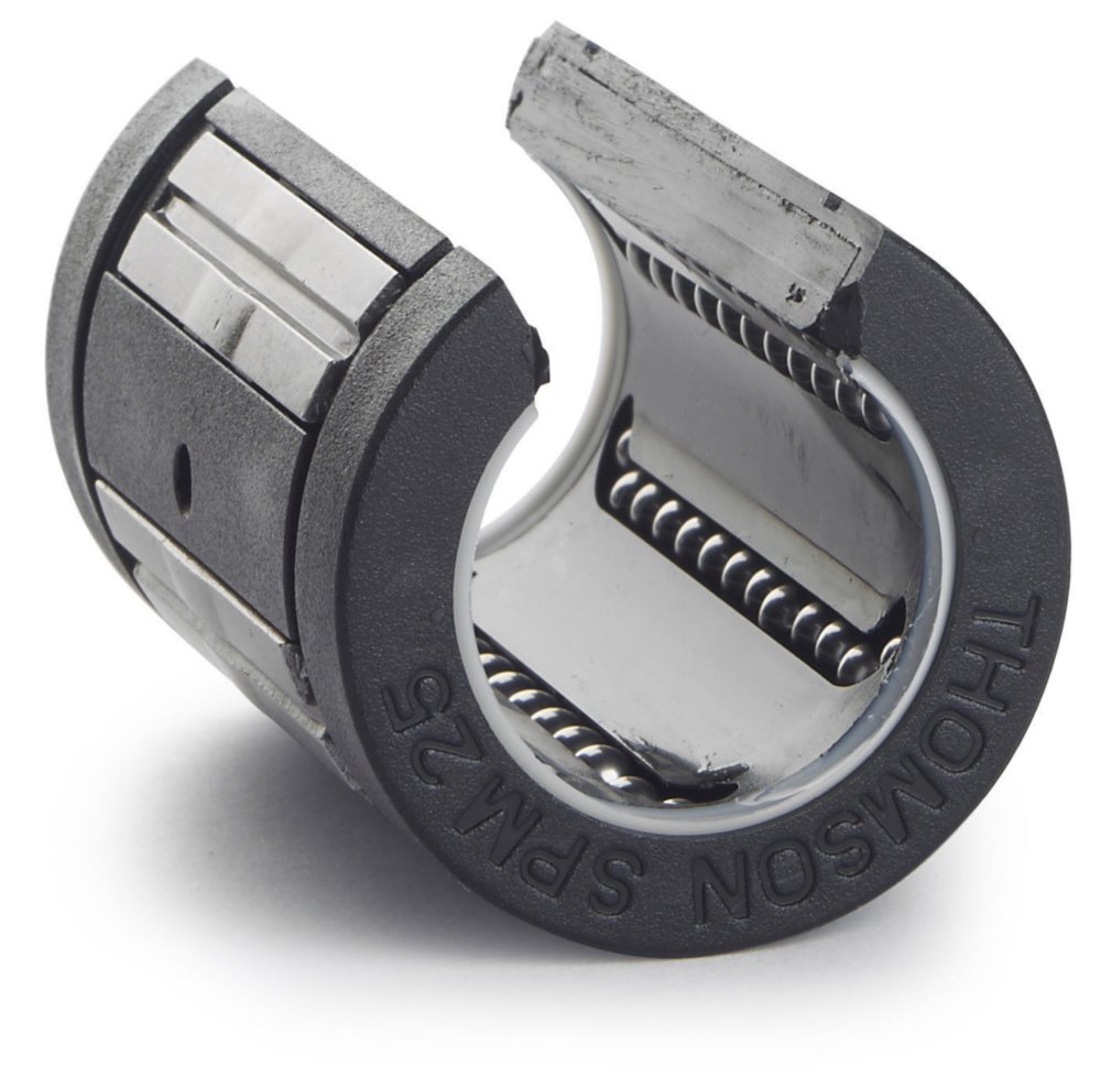 Thomson Linear SPM40OPNWW Linear Bearing, Ball Bushing only, Super, 40 mm, Open, Self-aligning, Adjustable, Integral Wiper both ends; Use with 40 mm Diameter Class L Shaft in continuously supported applications - MROSupply.com