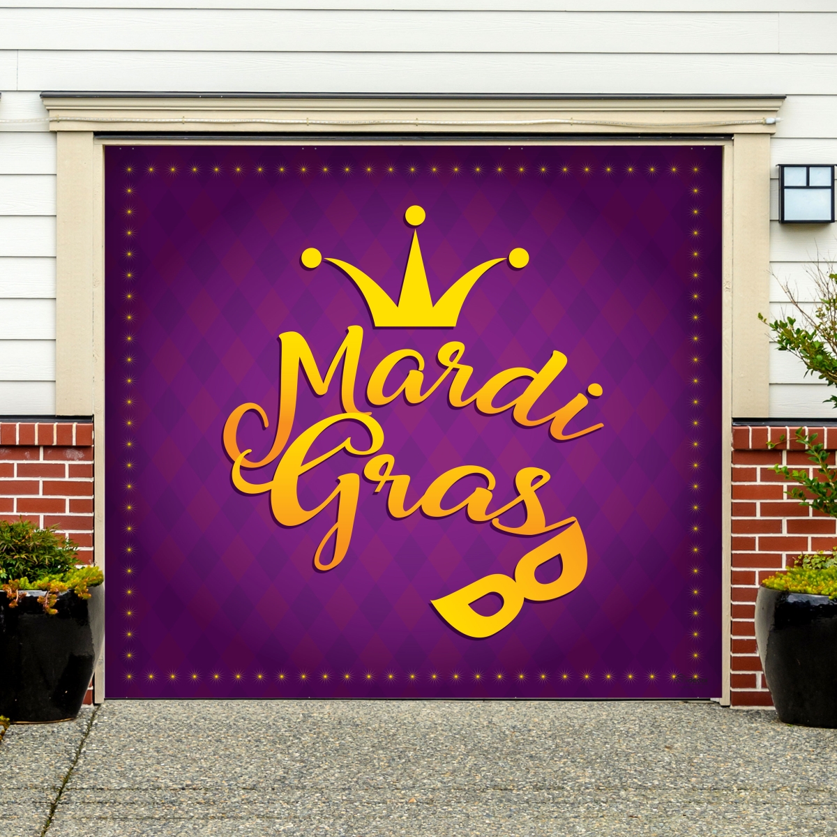 My Door Decor 285903MRDG-006 7 x 8 ft. Crown & Mask Mardi Gras Door Mural Sign Car Garage Banner Decor, Multi Color