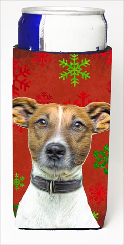 Caroline's Treasures KJ1183MUK Red Snowflakes Holiday Christmas Jack Russell Terrier Ultra Hugger for slim cans Can Cooler Sleeve Hugger Machine Washable Drink Sleeve Hugger Collapsible Insulator Bev