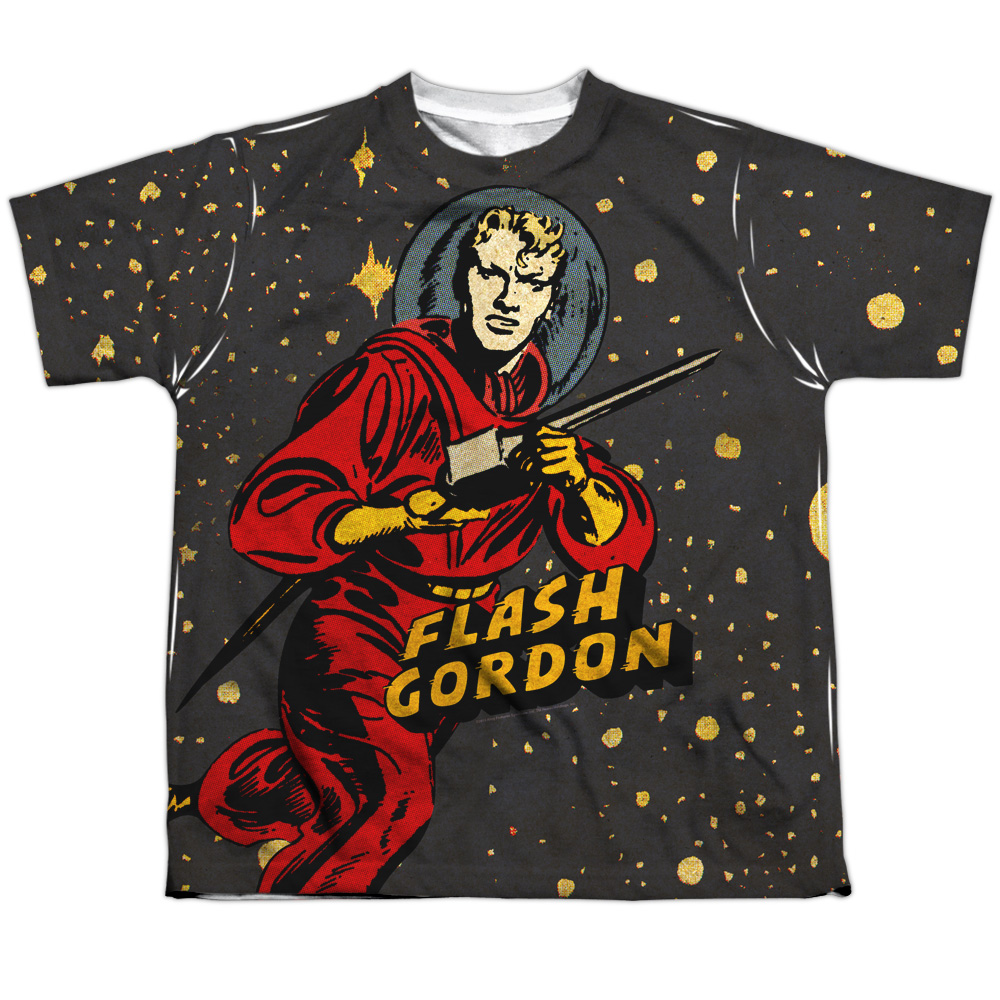 Trevco KSF178-YTPP-4 Flash Gordon & Blast Off Youth Polyster Crew Neck Short Sleeve T-Shirt, White - Extra Large