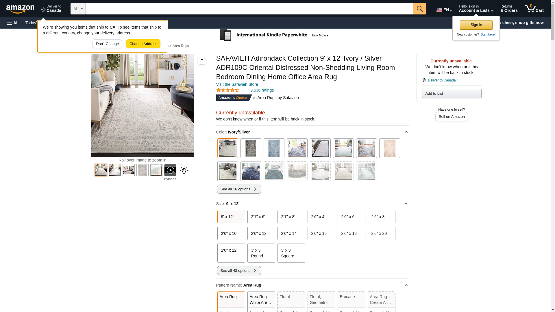 Safavieh ADR109C-9 9 x 12 ft. Adirondack Power Loomed Large Rectangle Area Rug, Ivory & Silver
