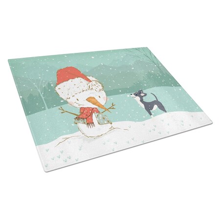 Caroline's Treasures CK2080LCB Black Chihuahua Snowman Christmas Glass Cutting Board Large Decorative Tempered Glass Kitchen Cutting and Serving Board Large Size Chopping Board