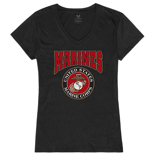 Rapid Dominance G03-MAR-BLK-02 Marines Graphic V-Neck T-Shirt, Black - Medium