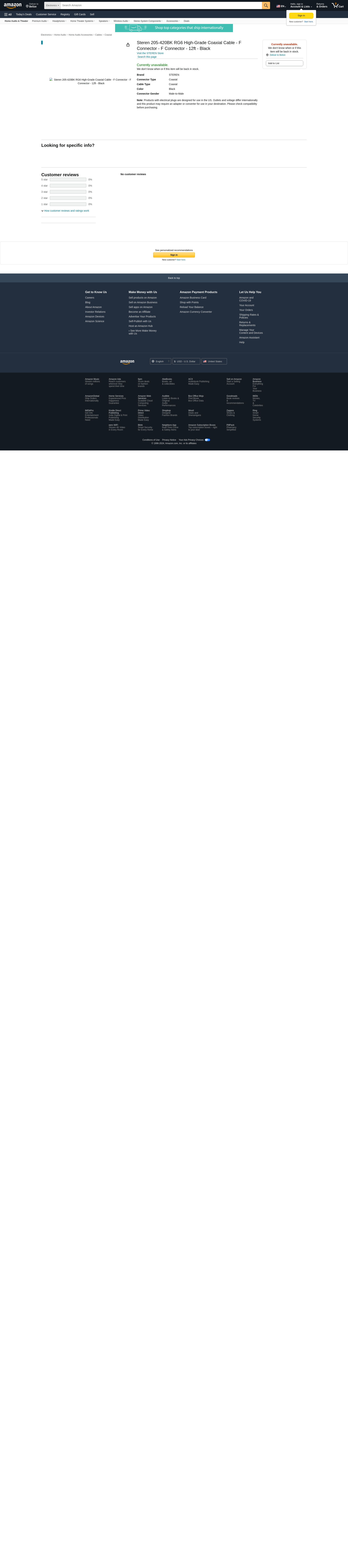 Steren 205-420BK STEREN F COAX RG-6 CABLE 12FT LENGTH