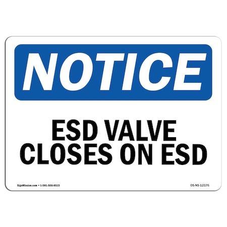 OSHA Notice Sign, ESD Valve Closes On ESD, 5in X 3.5in Decal, 10PK