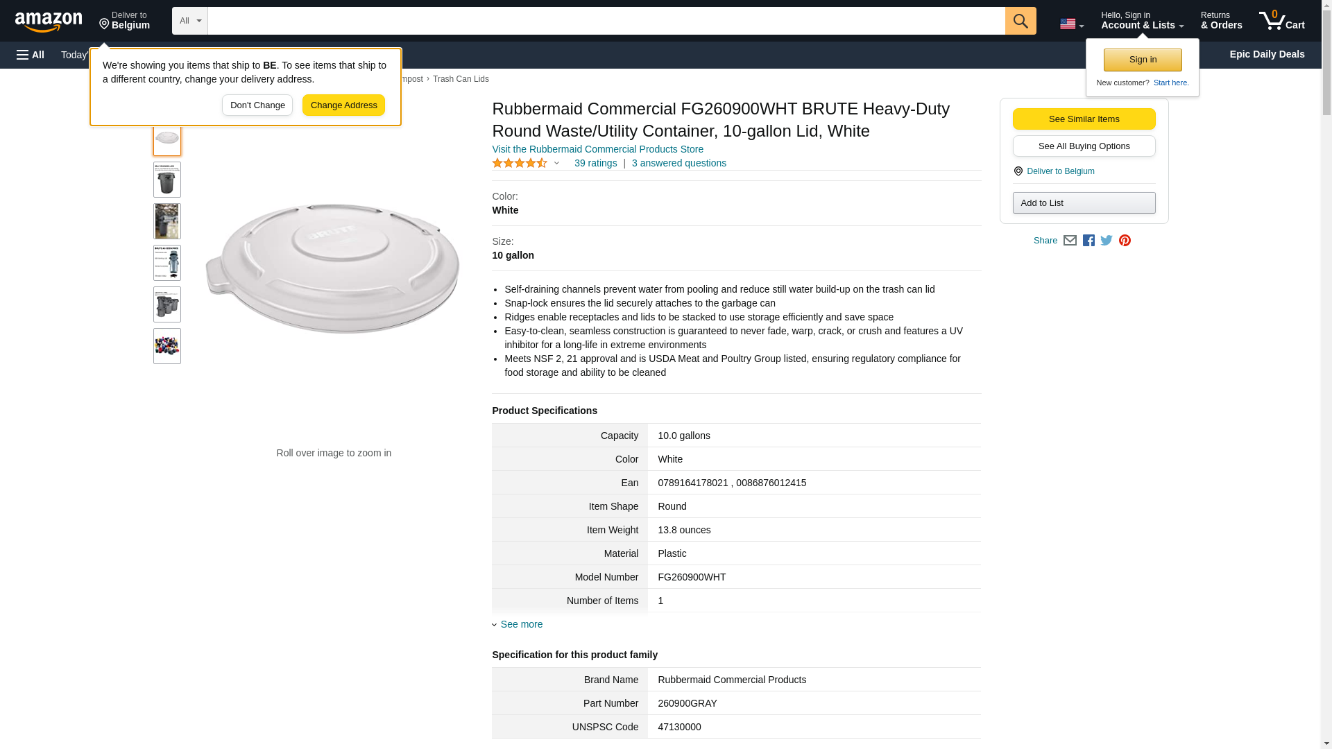 | Feature | Price For: Each Top Design: Flat Shape: Round Fits Container Size: 10 gal. Item: Trash Can Top Opening Closure Type: Snap-On Height: 1" Material: Plastic Color: White Dia.: 16" Country of Origin (subject to change): United States |