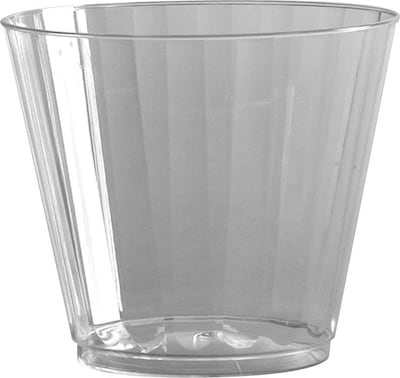 These clear plastic tumblers feature an elegant fluted design. Rigid plastic offers the strength and beauty of glassware. Provide a tasteful upscale appearance to any surroundings. They are disposable and offer all of the appeal of glass without the clean-up. Cup Type: Hot/Cold; Capacity (Volume): 9 oz; Material(s): Plastic; Color(s): Clear.