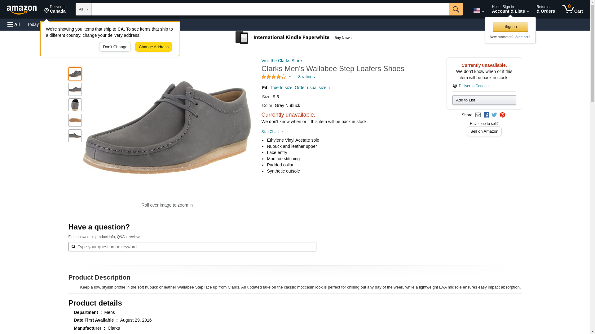 Clarks Men's Wallabee Step Grey Nubuck 8.5 M