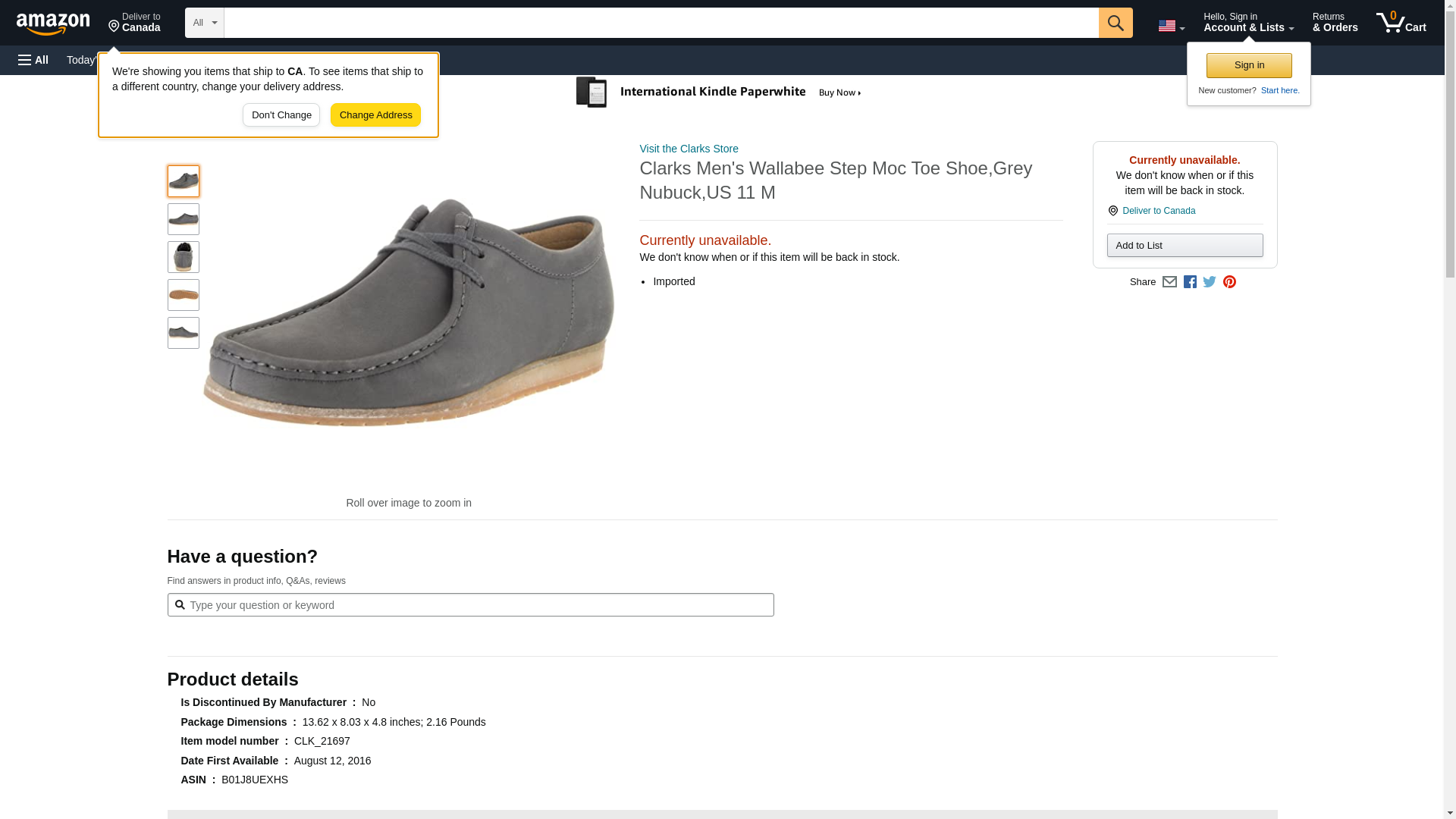 Clarks Men's Wallabee Step Grey Nubuck 10 M