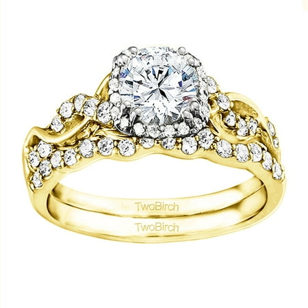 <ul> <li>Engagement Ring sets are made to fit together perfectly.</li> <li>The ring is set with 0.76 carats of Round stones Cubic Zirconia</li> <li>This ring is available in 10K Gold, 14k Gold and sterling Silver. Click TwoBirch above to see it in all of its variations.</li> </ul>
