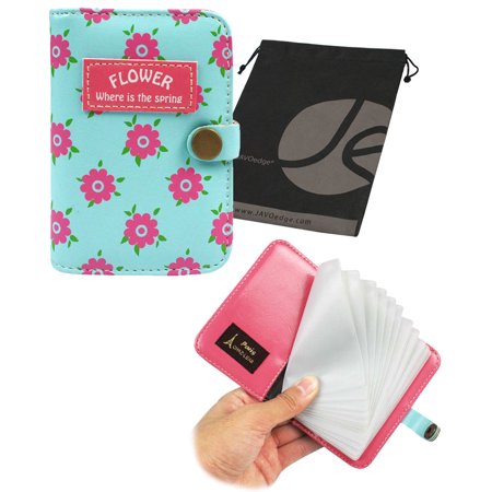 <ul> <li>Access your cards faster and easier by storing and organizing them in this floral printed 12 slot credit card wallet with snap closure</li> <li>Compact case has 12 card slots, great for reward cards, credit cards, business cards, I.D.</li> <li>Size: 11 by 9 cm, Material: PU leather, Closure: Snap button, Transparent card sleeves</li> </ul>