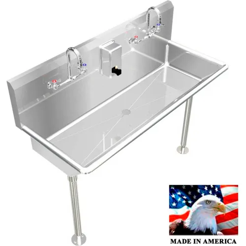 BSM Inc. Stainless Steel Sink, 2 Stations w/Manual Faucets Straight Legs 42" L X 20" W 8" D