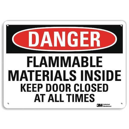 SmartSign by Lyle U3-1499-RA_14X10 "DANGER FLAMMABLE MATERIALS INSIDE KEEP DOOR CLOSED AT ALL TIMES" Reflective Recycled Aluminum Sign, 14" x 10"