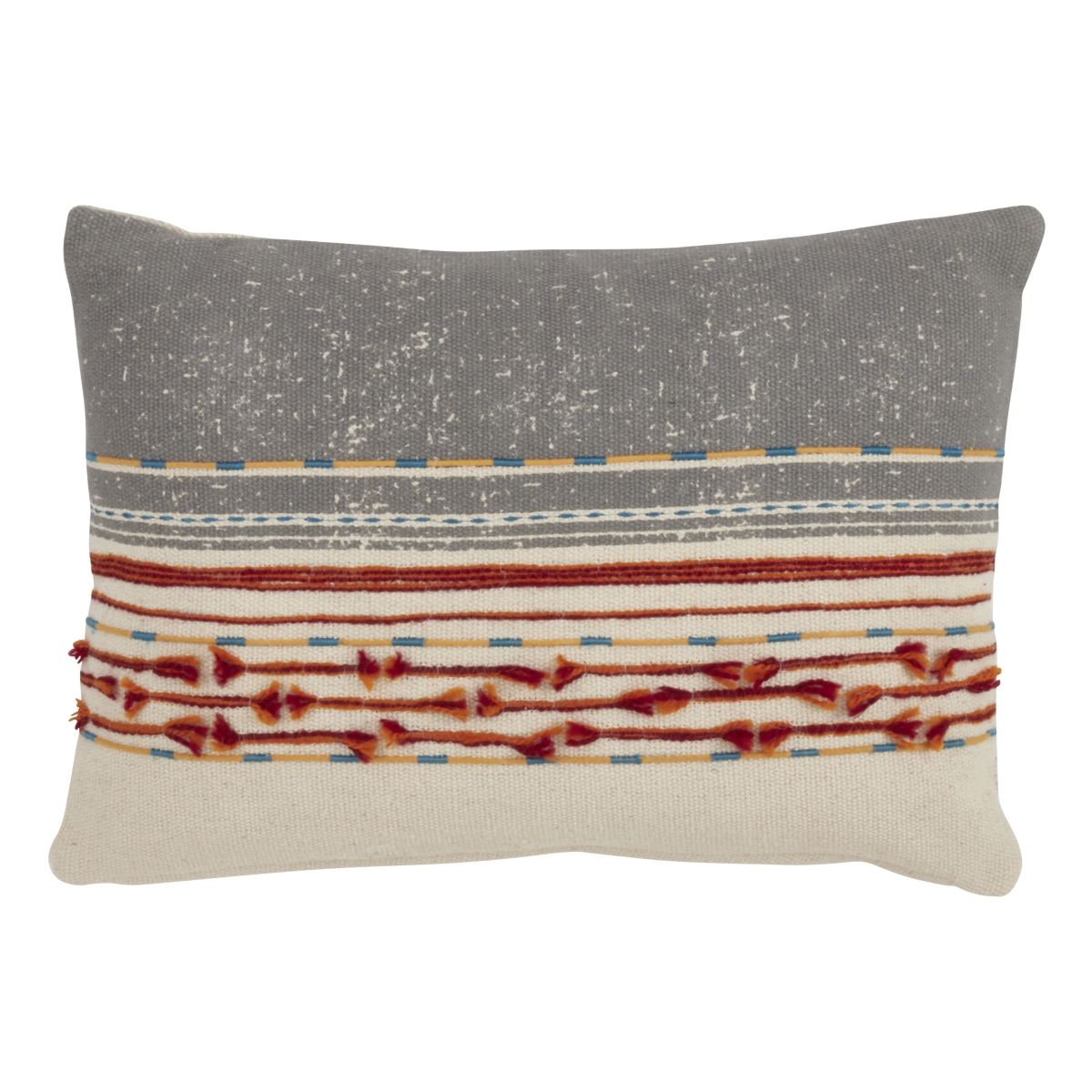 SARO 439.M1218B 12 x 18 in. Rectangular Down Filled Throw Pillow with Cord Applique Design - Multi Color