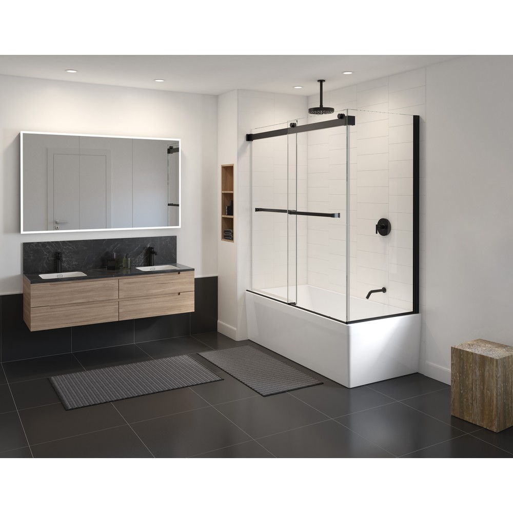 FLEURCO NPUST6532L-33-40 GEMINI PLUS 62-65 W X 66 H INCH SLIDING OR BYPASS TUB DOOR, MATTE BLACK, LEFT