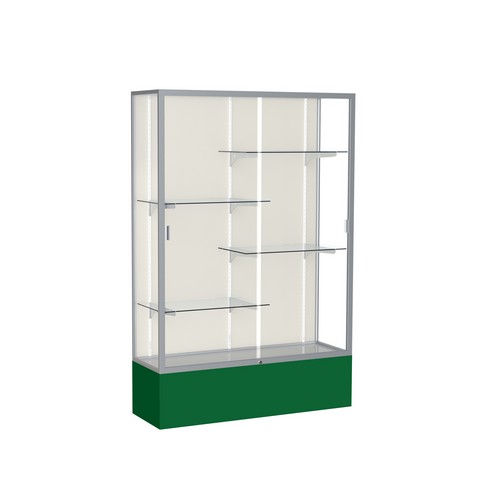 Spirit 374 Series Aluminum Frame Display Case, 48"L x 72"H x 16"D, Satin, Forest Green, Plaque Fabric