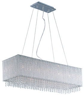 ET2 E23146-10PC Spiral Curled Metal Tubing with K9 Crystal Linear Pendant Ceiling Lighting, 9-Light 360 Watts, 10"H x 11"W x 35"L, Polished Chrome