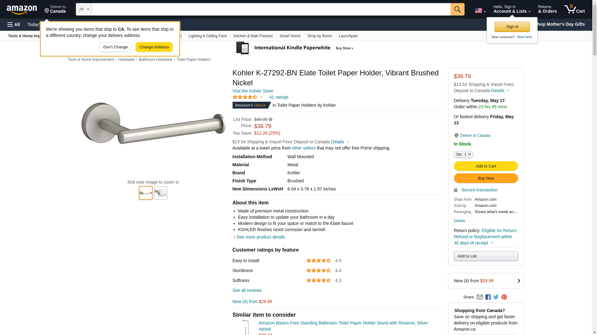 Shop the latest Toilet Paper Holders from Kohler like the K-27292-BN to complete your bathroom remodeling project. Browse our full range of cabinets, toilets, sinks, faucets, and more at vevano.com.