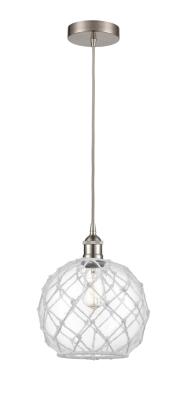 Innovations Lighting 616-1P-SN-G122-10RW Farmhouse Rope - 1 Light Mini Pendant In Industrial Style-12.75 Inches Tall and 10 Inches Wide, Finish Color: Brushed Satin Nickel, Glass Color: Clear/White Ro
